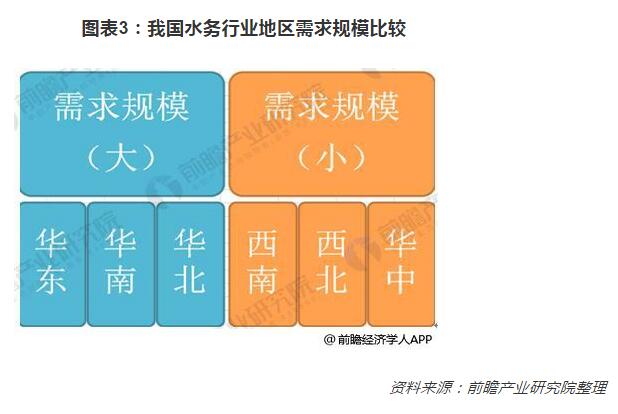 分析水務行業地域需求,我國華北地區、華南地區以及華東地區都具有較好的投資前景,水務企業在拓展這些區域的市場業務具有較大的利潤增長空間。