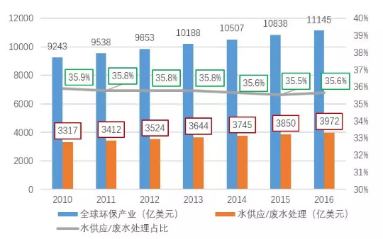 水供應/廢水處理占據全球環保產業最大的市場規模