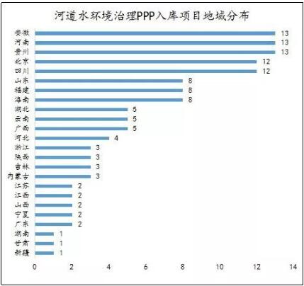 河道水環境治理PPP項目已經發展到一定規模,截止2018年7月,財政部入庫PPP項目總計7595個,其中水利建設與生態建設和環境保護類項目951個,占全部入庫項目總數的12.52%,河道水環境治理項目還涉及市政工程、城鎮綜合開發等行業,河道水環境治理PPP項目已具有代表性,進行河道水環境治理PPP項目數據分析,對推動PPP項目行業細化發展有一定意義。