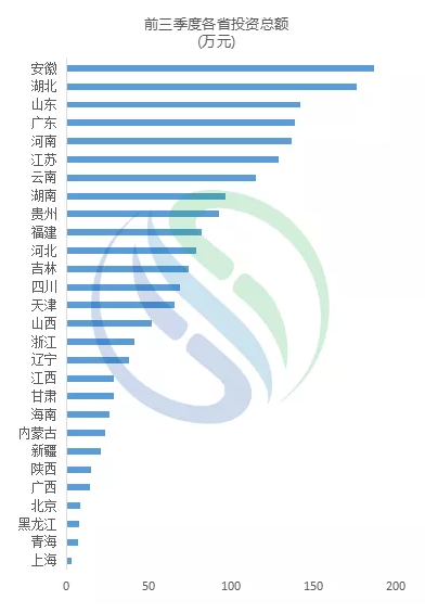 從全國范圍來看,胡煥庸線的右側的水務市場欣欣向榮,投資額排名靠前的省份多為胡煥庸線右側的省份。安徽、湖北、山東、廣東、河南、江蘇、云南,這7個省份的投資額已經超過100億元,長江大保護為長江沿岸各省份水務市場打開了一扇窗,安徽、湖北相繼出現多個大的水務項目,這兩個省份的投資額分別為186億元和176億元。