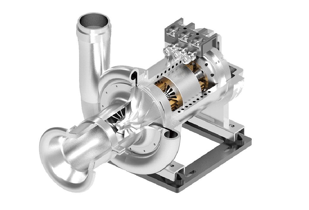 采用高效(xiao)高速永磁(ci)電機及(ji)控制技(ji)術、磁(ci)懸(xuan)浮(fu)(fu)軸承技(ji)術、高效(xiao)三元流葉輪等關鍵技(ji)術,取消接觸軸承、變速系(xi)統(tong)、潤滑系(xi)統(tong)、聯軸節等部(bu)件,磁(ci)懸(xuan)浮(fu)(fu)軸承系(xi)統(tong)通過電磁(ci)場(chang)將轉子系(xi)懸(xuan)浮(fu)(fu)支撐,啟(qi)動及(ji)停車時(shi),轉子處(chu)于懸(xuan)浮(fu)(fu)狀態,全運行(xing)周(zhou)期內,軸承和軸徑間(jian)無物理(li)性接觸,完全無摩(mo)擦,最(zui)大化的提(ti)高整(zheng)機效(xiao)率。